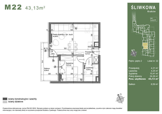 Mieszkanie - M22 - 43,13 m² - 2 pokoje