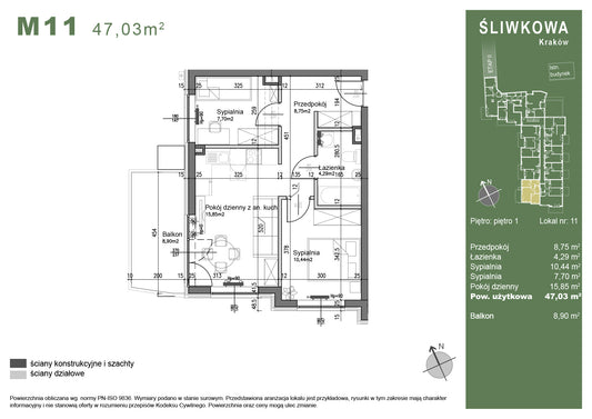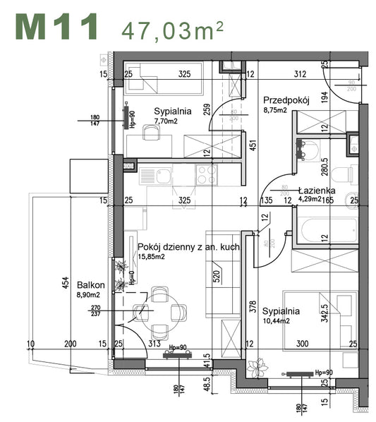 Mieszkanie - M11 - 47,03 m² - 3 pokoje