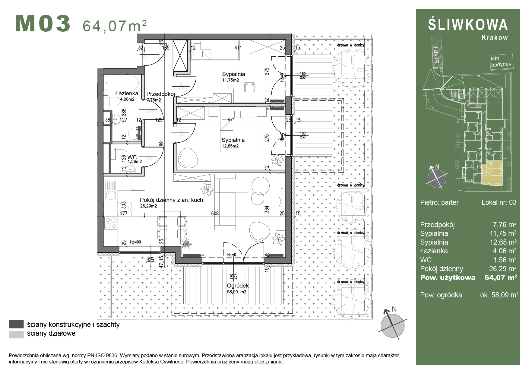 Mieszkanie - M03 - 64,07 m² - 3 pokoje - z ogródkiem