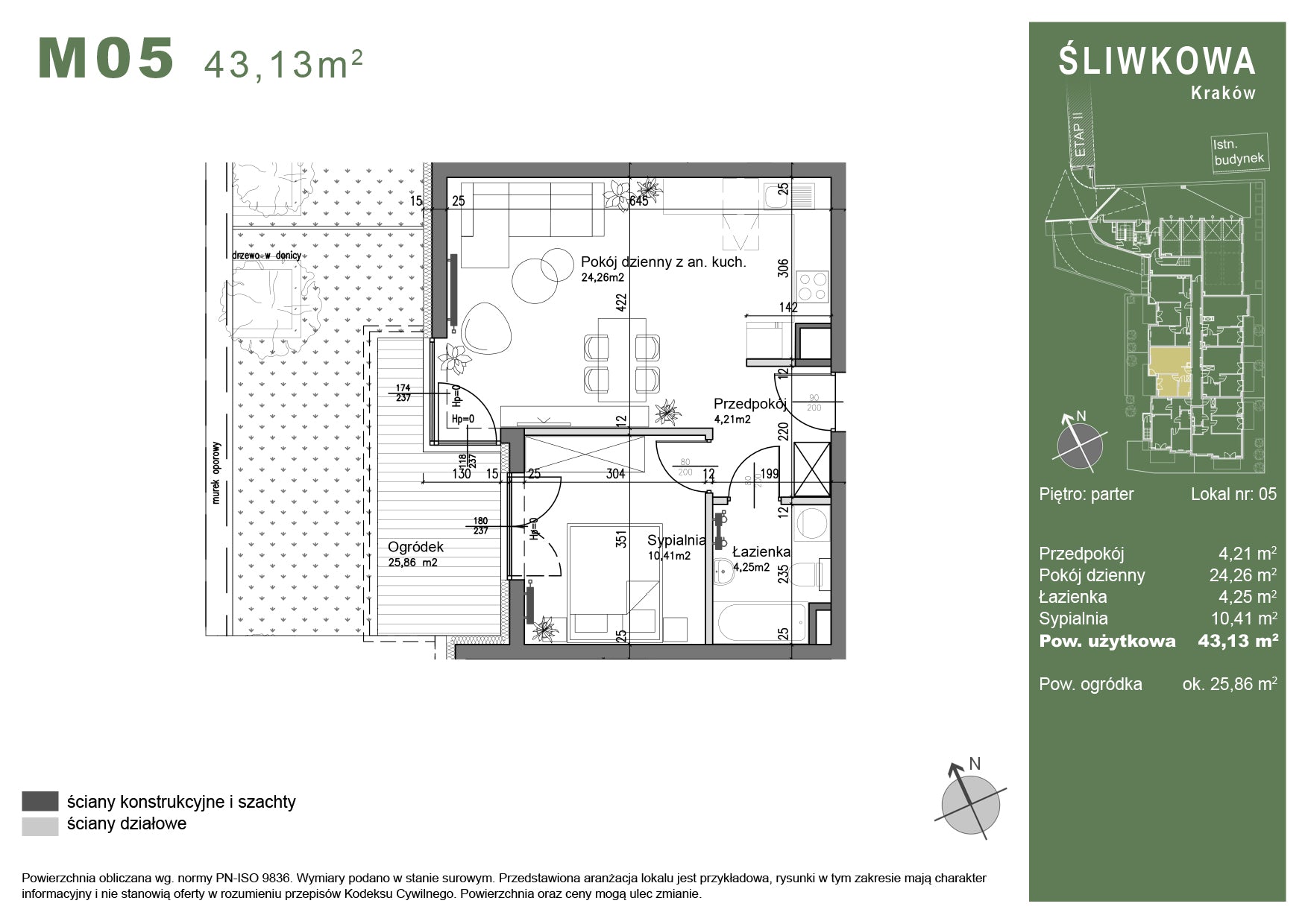 Mieszkanie - M05 - 43,13 m² - 2 pokoje - z ogródkiem