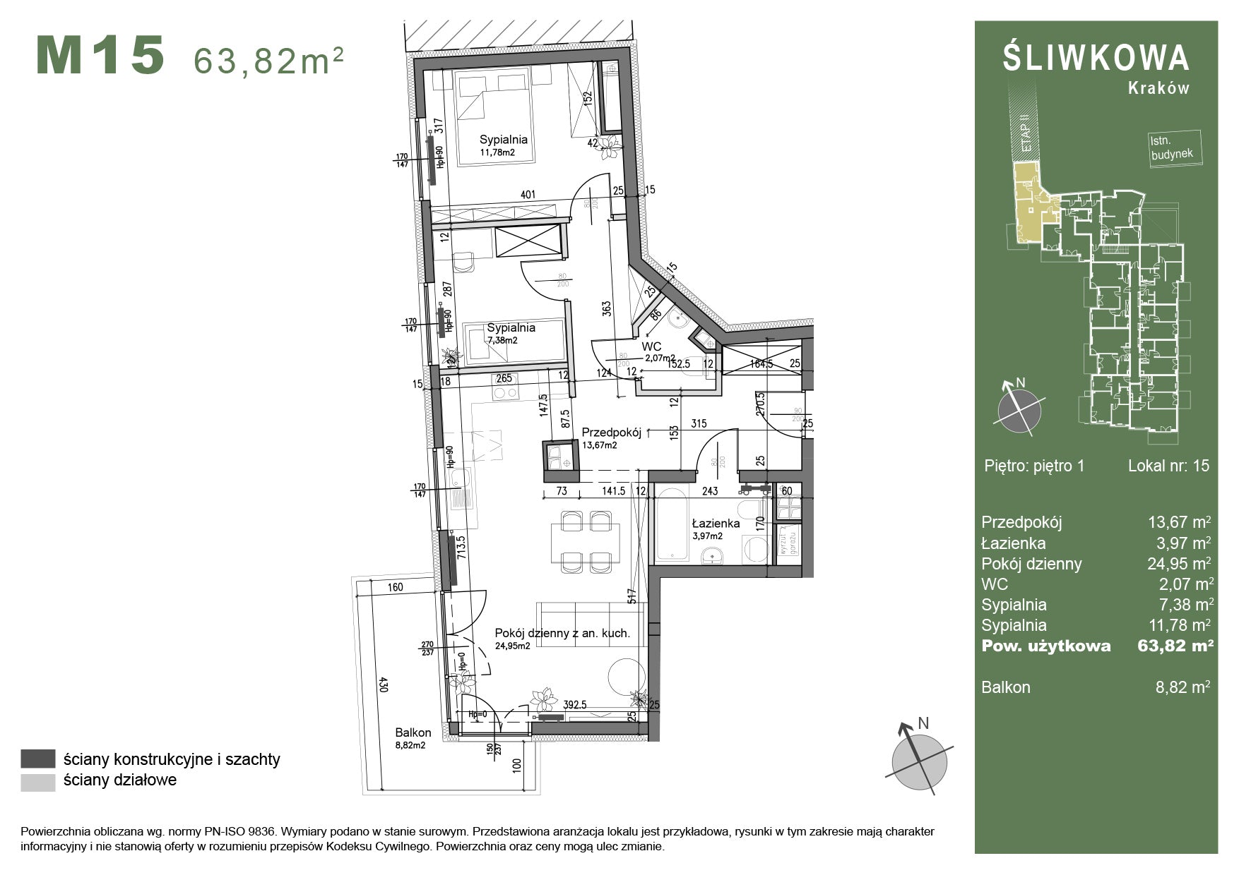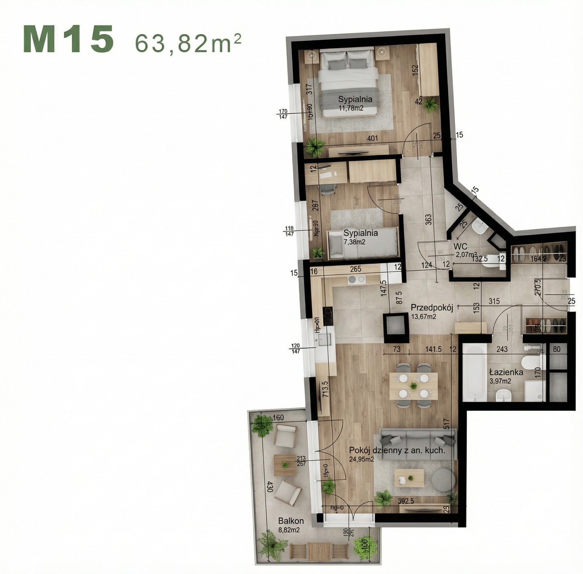 Mieszkanie - M15 - 63,82 m² - 3 pokoje