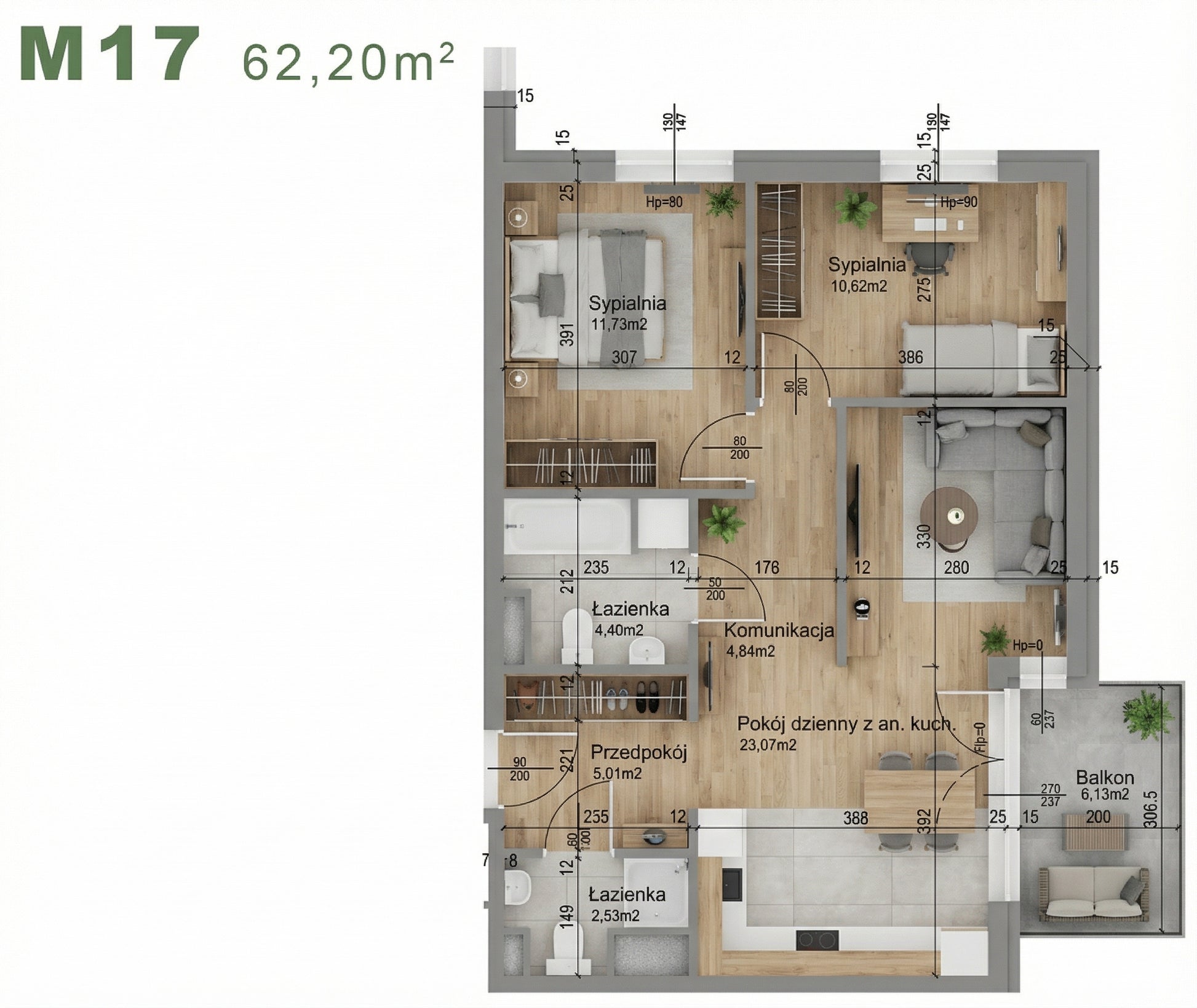 Mieszkanie - M17 - 62,20 m² - 3 pokoje