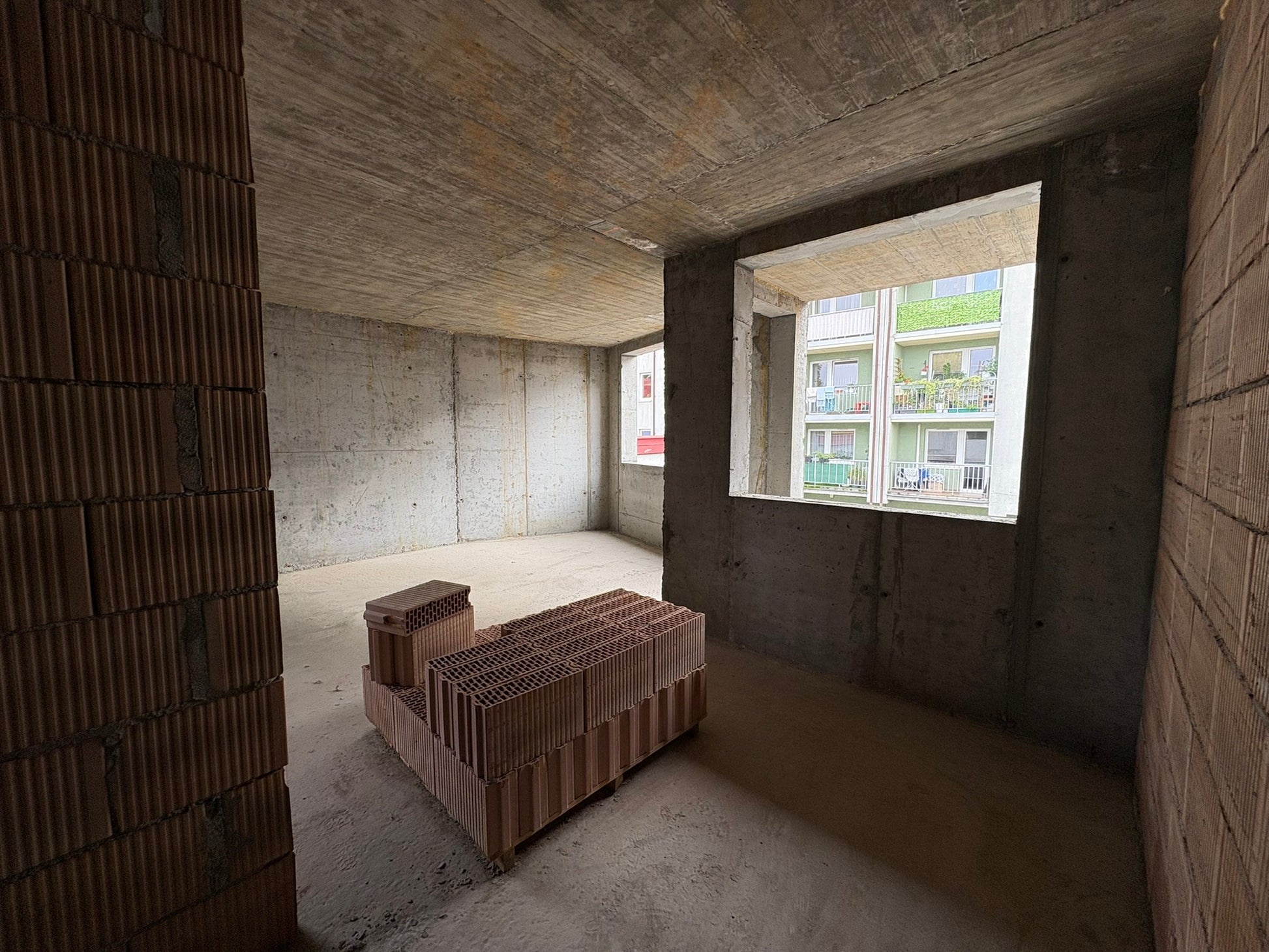 Centralnym punktem mieszkania jest wyjątkowo przestronny salon z aneksem kuchennym o powierzchni 27,72 m². Ta imponująca przestrzeń dzienna została ergonomicznie rozplanowana - część kuchenna wyposażona jest w miejsce na kompletne wyposażenie AGD oraz wygodny ciąg roboczy, podczas gdy obszerna strefa wypoczynkowa pozwala na swobodną aranżację przestrzeni jadalnianej i wypoczynkowej. Duże przeszklenia zapewniają doskonałe doświetlenie wnętrza i prowadzą do przytulnej loggii.