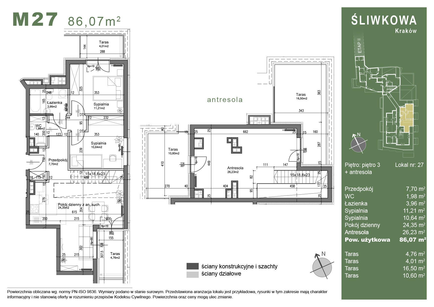 Mieszkanie - M27 - 86,07 m² - 4 pokoje - antresola