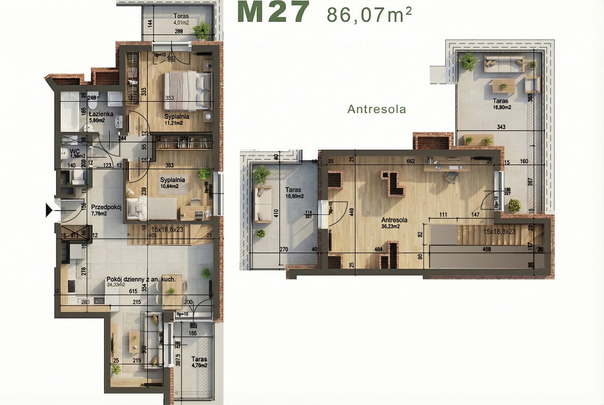 - Antresola: 26,23 m²