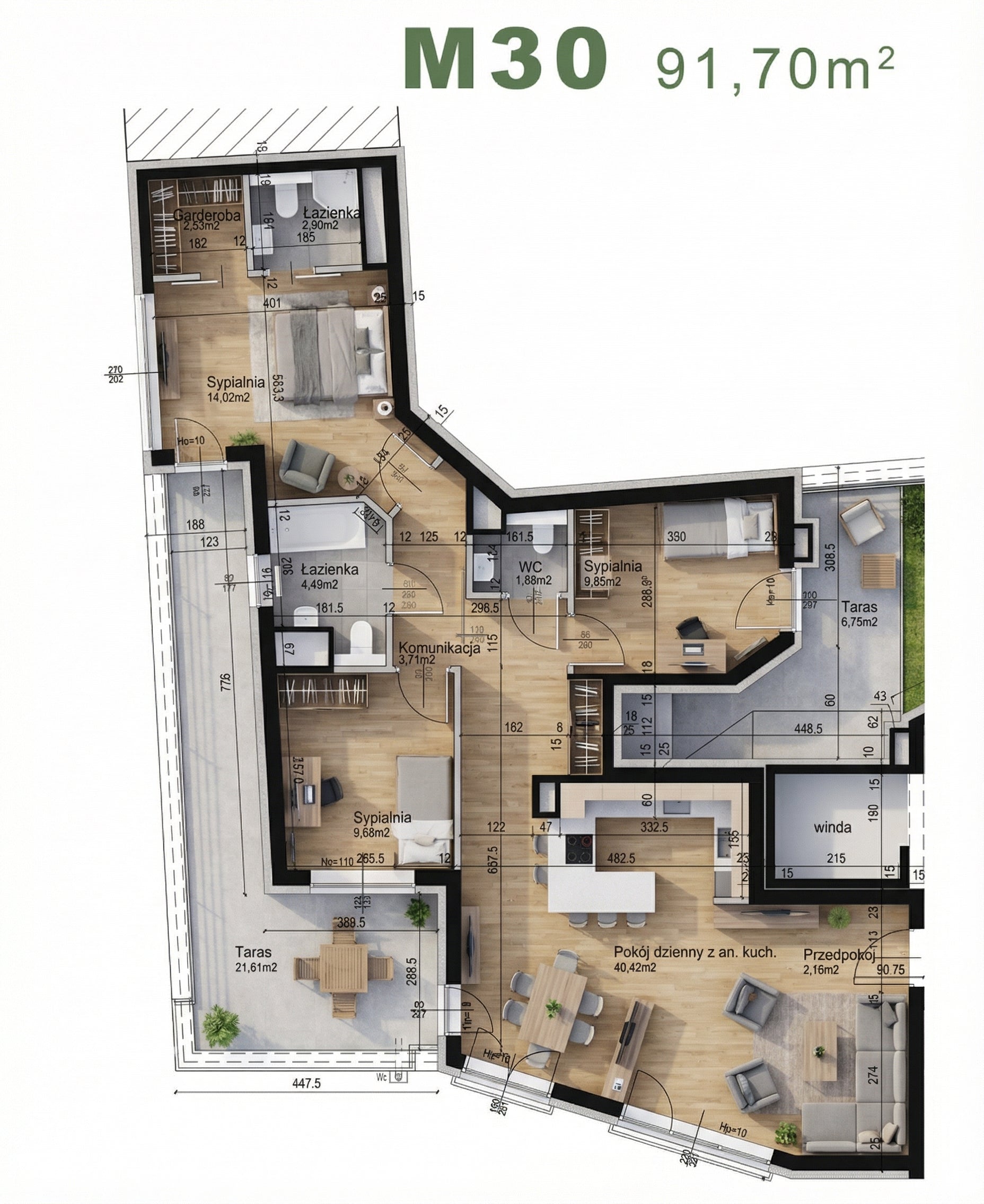 Mieszkanie - M30 - 91,70 m² - 4 pokoje